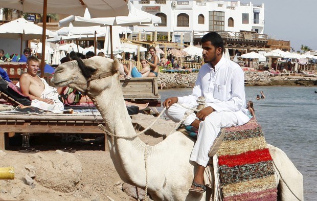 EGIPTO, 6.10.2012. Um beduíno passeia o seu camelo em busca de clientes entre os turistas. Em Dahab, Sinai, Mar Vermelho Asmaa Waguih/Reuters