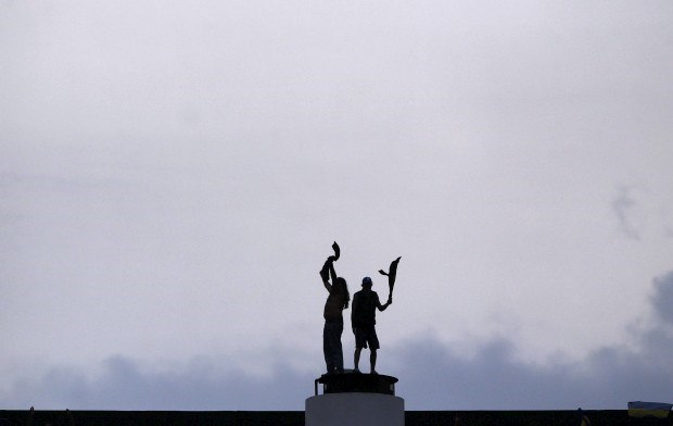 GABÃO. 23.01.2012. Um turista caminha para uma estátua que evoca a libertação da escravidão, perto da praia de Leon Ba, na capital Libreville. Thomas Mukoya/Reuters