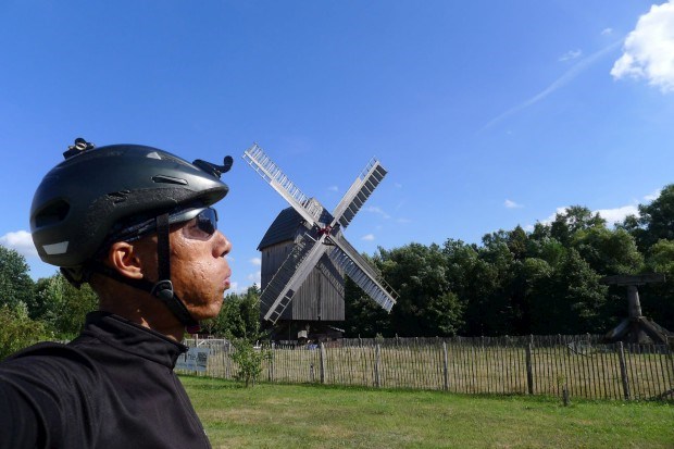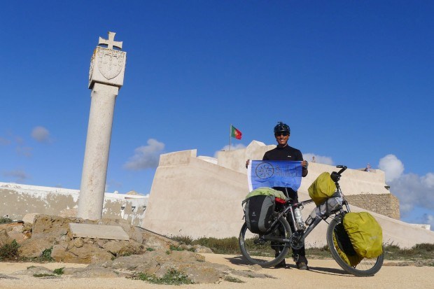 Feng, há poucos dias: com a sua nova bicicleta e o "cabaz" de produtos lusos que lhe foi enviado DR