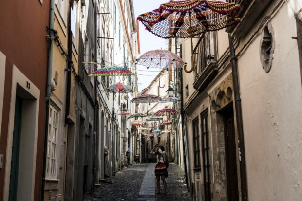 Chapéus-de sol em croché na rua Fernandes Tomás Dato Daraselia