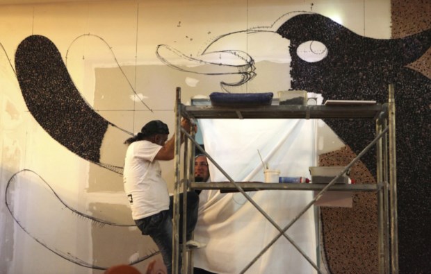 O seu último mosaico com rolhas de cortiça ficou a 70 mil das das 300 mil que agora vai usar no Alentejo Arben Celi/Reuters