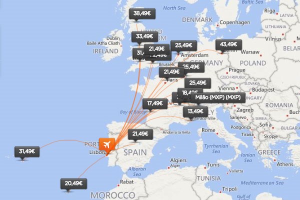O mapa do Viajómetro com preços mínimos, actualizado na tarde de 30 de Janeiro