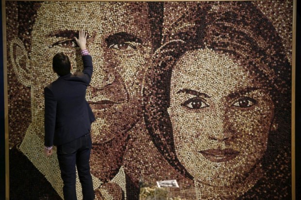 Pavilhão de Portugal Fitur 2015. O autor do retrato, Scott James Gundersen, retoca a sobrancelha de Felipe no dia de abertura da Fitur Susana Vera/Reuters