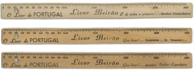 Réguas de madeira com a marca Licor Beirão