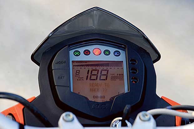 A facilidade proporcionada pela ciclística, com uma frente estável mas rápida na mudança de direcção permite que confiemos na travagem, sendo incrível a satisfação possível de extrair de uma moto com apenas 15cv. Outra surpresa é o consumo verificado a este ritmo, que se quedou nos 3,8 litros, sendo impossível gastar mais. Baixando o ritmo, para uma utilização normal, é possível ver no painel de instrumentos que o consumo baixa para quase metade, estando também disponível informação relativamente à sua autonomia.