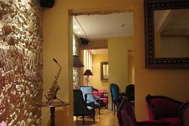 Ao todo, podemos passear por três salinhas interiores, três divisões distintas que criam, cada uma, o seu próprio ambiente intimista, marcadas pelas suas nuances cromáticas, dos rosas aos vermelhos, do azul ao creme, tudo pontificado pela solidez e desenho clássicos do mobiliário, detalhes artísticos ou espelhos que ampliam as áreas. A maior atracção, porém, e particularmente em noites cálidas, é em branco: é a salinha exterior, um pequeno e claro pátio (onde até os cadeirões e mesas são branquinhos) em que reina um grande painel de azulejos com motivos pombalinos da chancela Viúva Lamego.