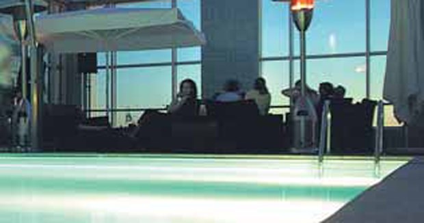 Fecha as portas mas nunca se encerra na realidade. Aqui, o céu é o limite - é o tecto. O azul que se transforma em negro iluminado por milhares de estrelas, passando pela transfiguração laranja dos pores do sol que são um dos cartões-de-visita mais apetecíveis. E pode ser desfrutado directamente junto aos janelões que cobrem quase três quartos do terraço, em mesas altas, mais afastado, nos sofás & mesas que formam ilhas, ou em pouffs e espreguiçadeiras que rodeiam a piscina (e são retirados a partir de uma certa hora) ou - e deixámos para o fim o que para muitos será a primeira opção - de dentro da piscina (que é do hotel e, agora, também dos clientes do Zenith - há toalhas para emprestar e casas de banho que podem fazer as vezes de balneário).