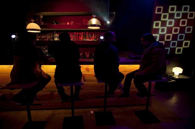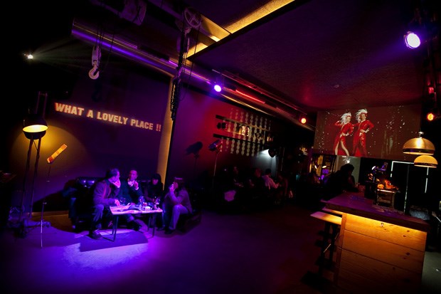 "What a lovely place!" [que sítio adorável, digamos], lê-se projectado numa das paredes desta pequena sala, corrida a paredes escuras, tornadas telas de projecção para sublinhar o ambiente cinematográfico e de experimentação audiovisual. O espaço, de linhas limpas e sóbrias e decoração neutra, resume-se em dois ou três takes: um grande janelão para a rua, um balcão de bar com cadeiras de pé (bem) alto, uma mesa móvel de DJ (com rodinhas, para ir-se adaptando ao local conforme as necessidades), três ou quatro conjuntos de cadeiras e mesas de toque retro, ao fundo uma estratégica parede-espelho para ampliar o espaço e, last but not least, um grande ecrã, rei e senhor desta "muvida".