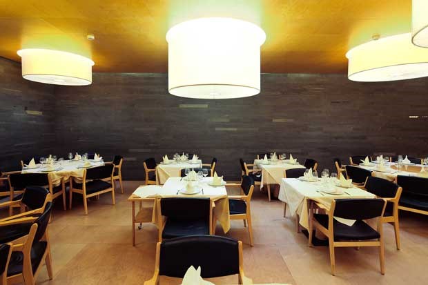 O espaço destaca-se, desde logo, pela singularidade. Encostado ao pinhal e numa das últimas perpendiculares à duna, trata-se de um edifício exclusivamente destinado ao restaurante, que aparenta ser apenas mais uma das modernas moradias da urbanização. Um cubo escuro de traça marcadamente contemporânea e revestido por blocos de xisto. No interior, organizado em dois níveis, o espaço é amplo, confortável e inundado pela luz natural. Mobiliário elegante, de tons claros, estilo nórdico, baixela adequada à função e mesas aparelhadas com toalhas e guardanapos de algodão branco.