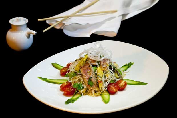Estamos portanto no universo da cozinha asiática, em que podemos escolher, por exemplo, entre um Menu Japão (camarão tigre e novilho grelhado com yakimeshi e legumes salteados), um Menu Tailândia (caril verde com peixe e marisco e arroz de jasmin; som tom Thai, ou seja, salada de papaia verde); um Índia (vieiras em espuma de caril, pão naan com chutney; salada de arroz tufado com ervas aromáticas; kofta de borrego); um Vietname (rolo de papel de arroz com legumes; phô bó - caldo de carne; salada de manga e camarão); ou um Veggie Pan Asian (couve pak choi salteada; mini-crepes de legumes, beringela chinesa grelhada com molho de miso; pad thai - massa salteada com tofu e legumes). Estas são as propostas do menu Rush Hour, a 25 euros, para quem tem pressa.