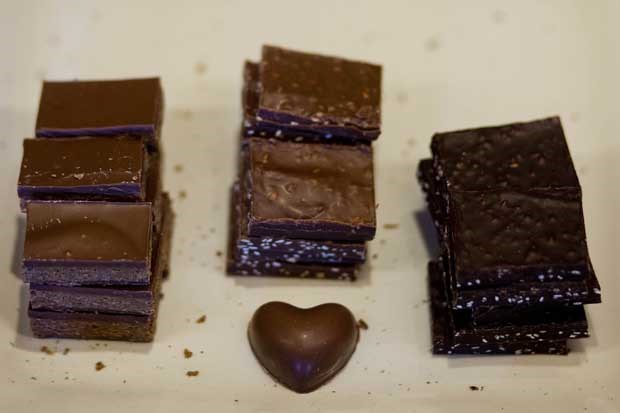 Temperar o chocolate é o mais complexo, diz. Tem até um desenho para explicar às crianças como é que isso se passa: é que o chocolate quando solidifica forma cristais devido à cristalização da manteiga de cacau. Esses cristais podem ser muito diferentes - Beatriz gosta de fazer a comparação entre o grafito dos lápis e o diamante, que são compostos formados pelo mesmo elemento químico mas cristalizado de duas formas diferentes. É preciso, por isso, um especial cuidado para temperar o chocolate - derretê-lo e depois levá-lo até à temperatura ideal, misturando com outra parte, sólida, do mesmo chocolate -, de forma a que ele adquira um aspecto brilhante e uma textura suave.