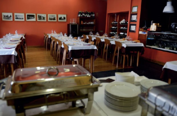 A sensação imediata é a de estarmos num ambiente acolhedor, quiçá “seleccionado”, mas com algumas ambivalências no conceito. Os candeeiros de pé com abat-jours clássicos esbarram nas toalhas e guardanapos de papel, na disposição das mesas alinhadas para pequenos grupos, e culmina com um impositivo ecrã de televisão. Tudo isto a média luz, ou quase à luz de velas, com a leitura do menu a estar dificultada aos jantares para quem fica no meio da sala. Um dos factores que mobilizará mais a clientela talvez seja a variação dos buffets que são servidos a cada dia da semana ao almoço. Às terças, feijoada à brasileira, às quartas três receitas de bacalhau que vão mudando semanalmente, e às quintas e sábados cozido à portuguesa.