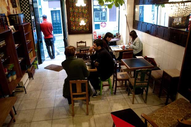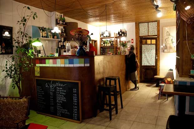 O balcão de serviço impõe-se no espaço e, entre meia dúzia de mesas e cadeirões, espalham-se os fregueses. Ainda se vê um ou outro intrigado com as mercearias, como que questionando-se se "são decoração ou mesmo para vender". "É tudo para vender. E, claro, também para usar na parte de bar", explica Lígia. "Tanto chega uma vizinha que precisa de umas cebolinhas como um cliente para beber um copo e ouvir uma música." A escolha musical é cuidada (ou não tivesse Lígia no currículo a palavra DJ) mas a banda sonora também pode ser apenas alguma rádio mais selecta.