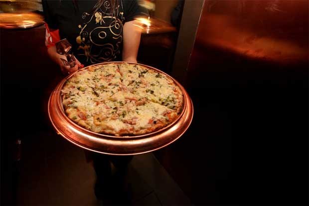 Aqui, as pizzas respeitam a massa fina e as bases clássicas à italiana, mas os ingredientes são casados à parte. Para manter a pizza no ponto certo, a especialidade (sempre com tamanho avantajado) segue para a mesa, directamente do forno a lenha, fatia a fatia.