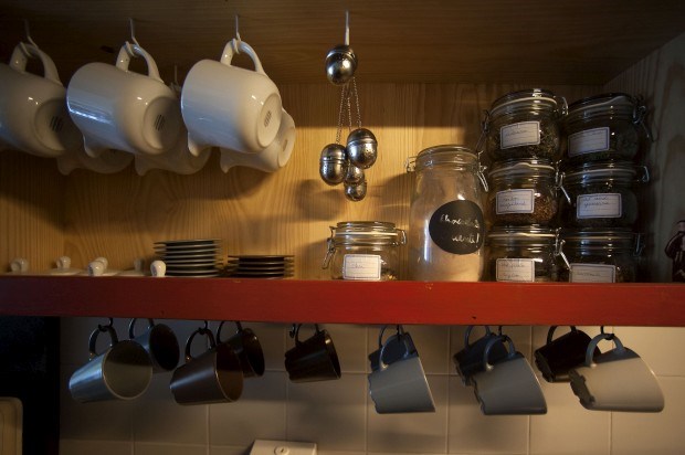 O resultado é um espaço com estórias e memórias - colectivas, como as cadeiras da sala da frente vindas do café Bom Dia; e pessoais, como os candeeiros na sala superior traseira que Inês trouxe da Índia, ou o móvel da TV dos avós do João que está na sala polivalente (à procura de parcerias que a dinamizem), as peças de casas de amigos e família, as plantas ou ainda as portas que Miguel transformou em balcão.