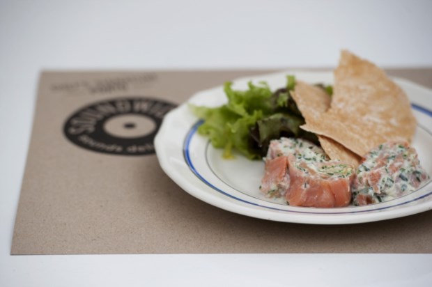 António José já nos explicou isto tudo - e entretanto a mesa começa a compor-se. Para além das soundwiches, há ainda as tapewiches, também com a assinatura dos mesmos chefs. Provamos um carpaccio de polvo em marinada de pimentos com salada (da autoria de Nuno Inverneiro), um carpaccio de novilho em salsa tartufo com rúcula e queijo velho de vaca (Luís Américo), mas é a proposta de Camilo Jaña que mais nos surpreende: mil folhas de salmão fumado com ricotta e ervas. Acompanhamos com sangria de espumante (recomendável) mas a boa notícia é que na Soundwich quem quiser trazer o seu vinho de casa é bem-vindo.