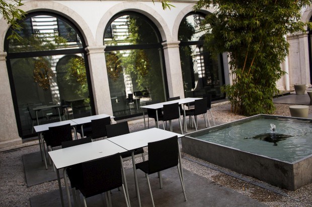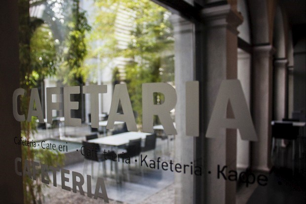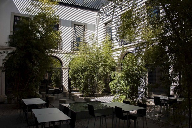 Com porta de acesso directo a todos (visitantes ou não do museu), entra-se na esplanada interior, cujo tecto é protegido por placas de madeira que intercalam a luz solar com as sombras, e é-se recebido por um duplo frescor, o do verde das plantas e o de uma pequena fonte moderna. Pelo espaço, sucedem-se as cadeiras e mesas de traços minimalistas.