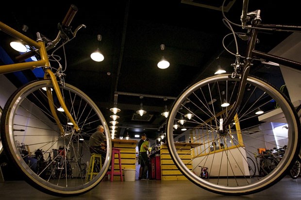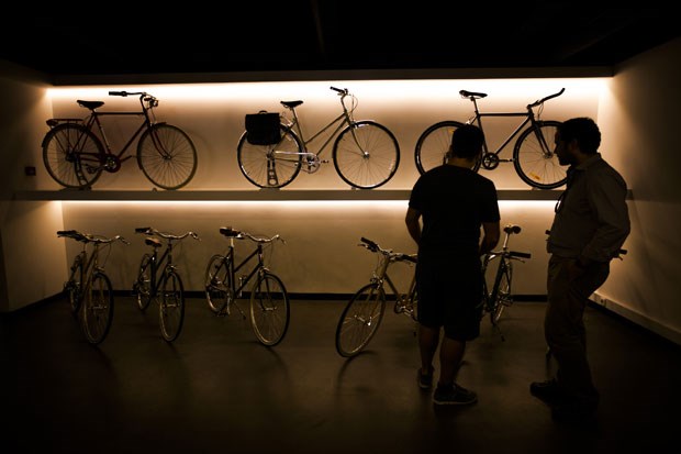 No fundo da loja, uma escada de alumínio exibe livros e manuais sobre tudo o que é preciso saber sobre bicicletas e percursos. As bicicletas? Existem de várias marcas, cores, estilos e feitios, urbanas, com cesto e sem cesto. Entre a variedade encontram-se as portuguesas Órbita e também a britânica Tokyo. A maior novidade são as dobráveis. Três das cinco bicicletas que entraram no Velocité dobravam-se, o que permite fechá-las e guardá-las facilmente. Uma opção para quem usa como complemento o transporte público ou tem limitações de espaço em casa. As crianças não são esquecidas e pequenos modelos em madeira estão disponíveis para que os mais novos possam aprender a equilibrar-se, sem recurso às rodas de apoio.