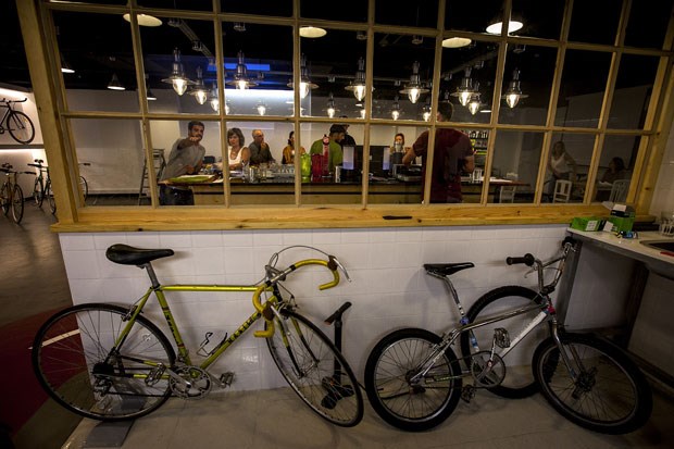 O número 120 A chama a atenção de ciclistas e peões. A porta, ao lado de uma montra que exibe uma bicicleta de modelo urbano, é a mesma que antes dava acesso a um stand de automóveis. "Uma simples coincidência", que retrata a tendência que se faz sentir nos centros urbanos, onde a bicicleta surge como alternativa de transporte quotidiano, garante João Camolas, um dos proprietários do primeiro velo café português.