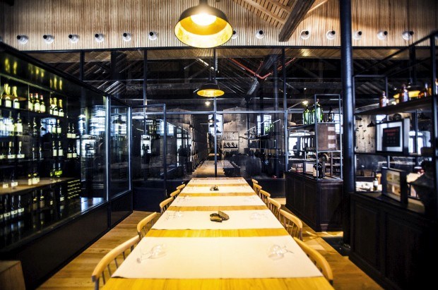 É assim que são tratadas as carnes que por estes dias têm sido servidas no Vinum. Peças com bem mais que um quilo cada, pouco menos que uma mão de través em altura, e emolduradas por branca filigrana de gordura. Ao cenário de rara beleza que o Vinum sempre oferece com o seu enquadramento e vistas para o Douro e as zonas históricas do Porto e Gaia, junta-se por estes dias o efeito cénico da intensidade das brasas e o perfume que salta da carne à medida que o calor se entranha.