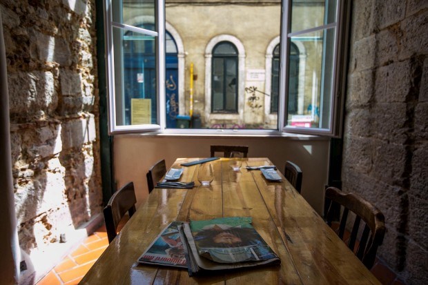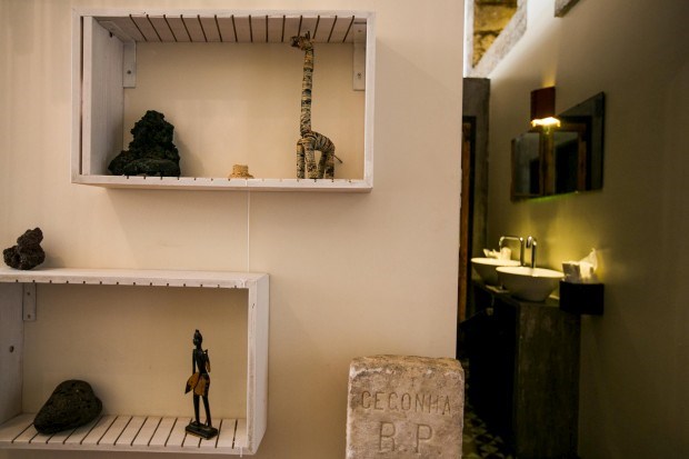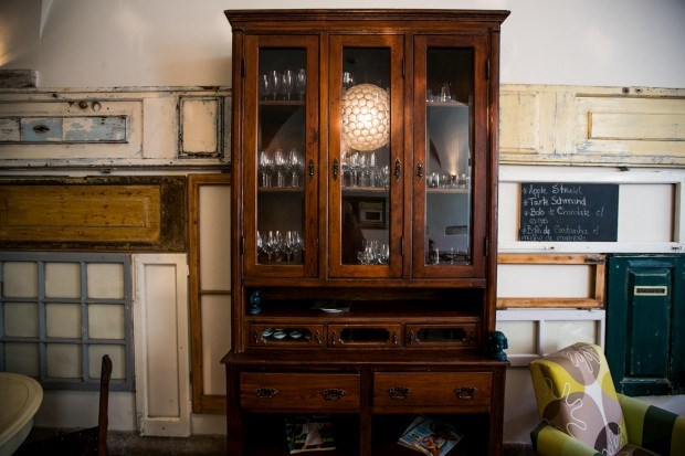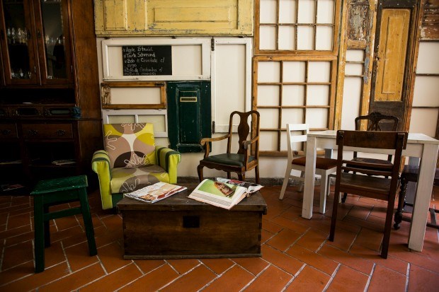 No espaço amplo e luminoso, de tectos altos abobadados, folheiam-se revistas francesas dos anos 60. Os detalhes, provas da criatividade e do investimento pessoal dos donos, estão por toda a parte: as mesas forradas com capas de revistas antigas; os candeeiros feitos de copos de plástico, ou improvisados, com livros a tapar as lâmpadas sobre a parede; ou o conjunto de portas velhas que forram uma das paredes, recolhidas de restos de obras pelos passeios nocturnos dos donos, “perdidos por Lisboa” à procura de mais portas decorativas, relata Cecília Lopes, proprietária do bistro.
