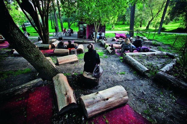 Serpenteamos pelos trilhos da Mata de Alvalade até vislumbrarmos um quiosque que se abre numa convidativa sala de estar ao ar livre. A cidade está a uns metros, mas já não se dá por ela. Os sentidos convertem-se a outro ritmo.