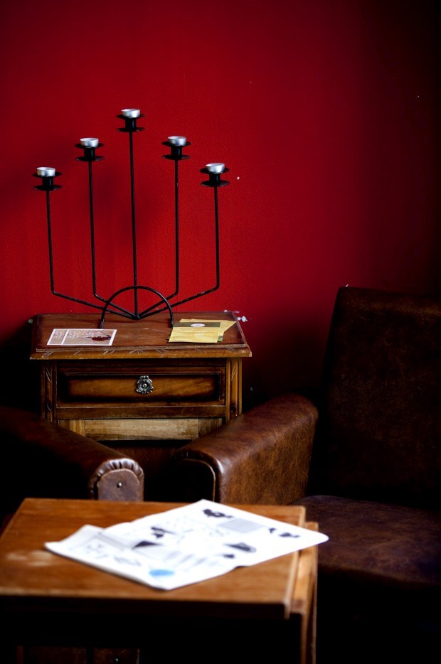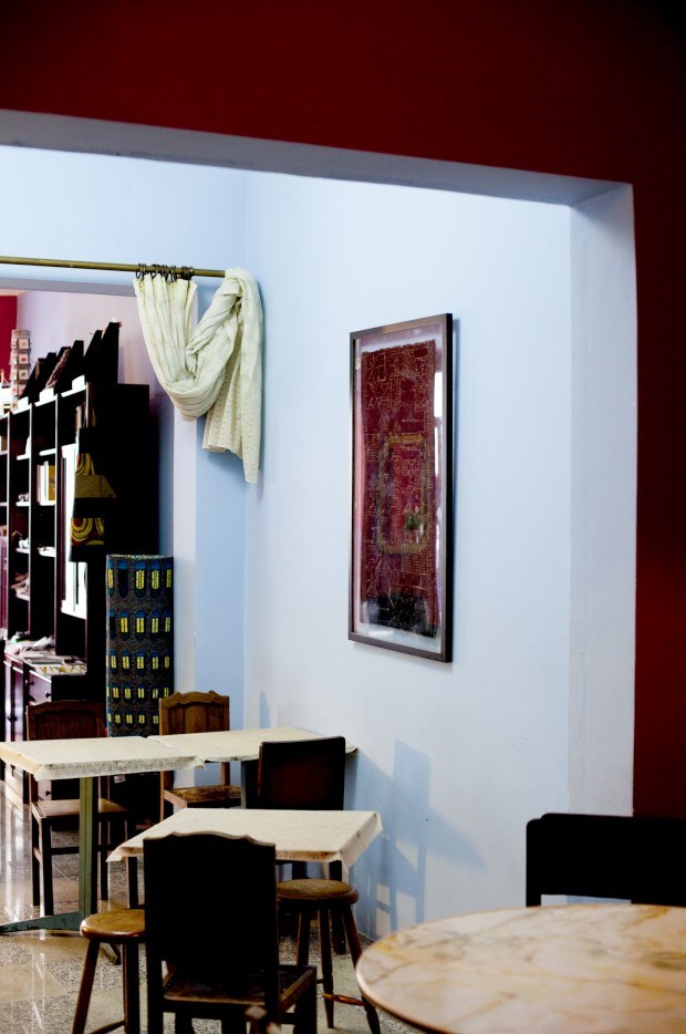 A sala onde entramos, com uma parede vermelha que se ergue por trás do balcão, é palco de convívios e petiscos. A que se segue era ainda uma montra de caos, de obras e resíduos, propositadamente exposta para que se saiba que aqui há um projecto em construção. Aqui saciam-se duas fomes: o conceito é "fundir gastronomia com cultura", nas palavras de Rui Duarte, presidente da associação.