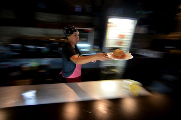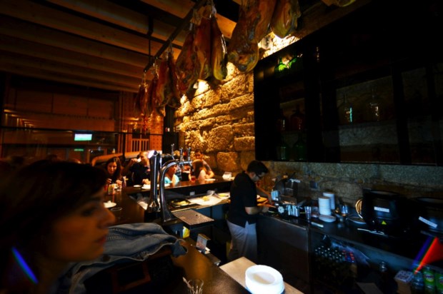 A Taxca é, então, um fartote de "comida caseira" durante todo o dia: ao almoço, ao lanche, ao jantar e fora de horas. Com tantas horas de porta aberta, ao balcão ou nas mesas altas tanto se sentam idosos como jovens à procura de amainar o estômago. Uma clientela "dos oito aos 80" anos, reforça Tiago. A decoração do espaço é quase inexistente: algumas mesas, um balcão, com garrafões de vidro vazios na prateleira, o dito armário para o stock de presuntos ao fundo, uma parede de cimento queimado e outra de granito, traves de madeira no tecto.