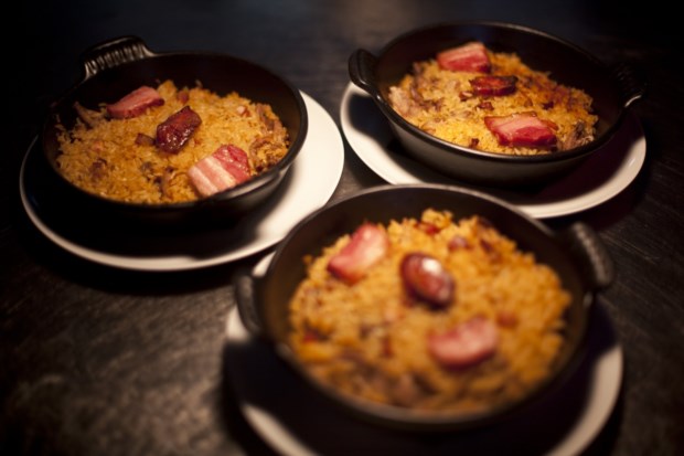 As doses generosas servidas em tachinhos de ferro fundido não deram espaço para mais que duas sobremesas. Um “arroz doce com gelado de canela” (4,50 euros) com a ideia do gelado de canela a ser interessante, mas com o arroz a estar um pouco líquido de mais e de sabor aguado. Portentosa era a “mousse de chocolate gelada com pinhões tostados e Vinho do Porto” (6,50 euros), servida numa caneca com os frutos secos ligeiramente caramelizados no topo, lado a lado com uma espuma do vinho, e à parte uma bola de gelado de framboesa que ia refrescando o palato para contrastar com o óptimo chocolate negro.