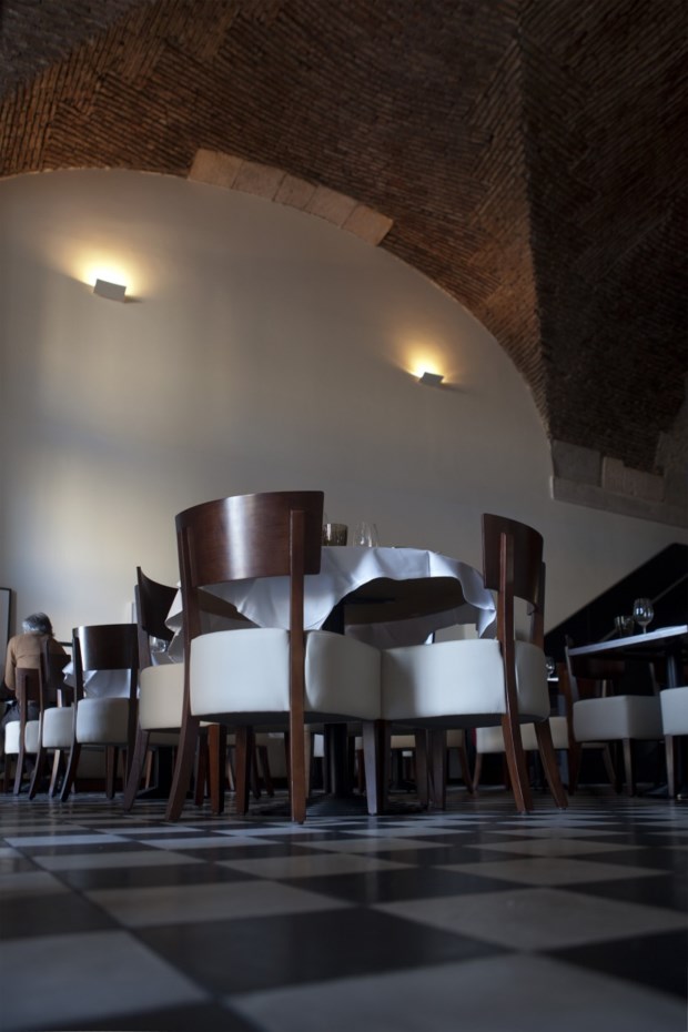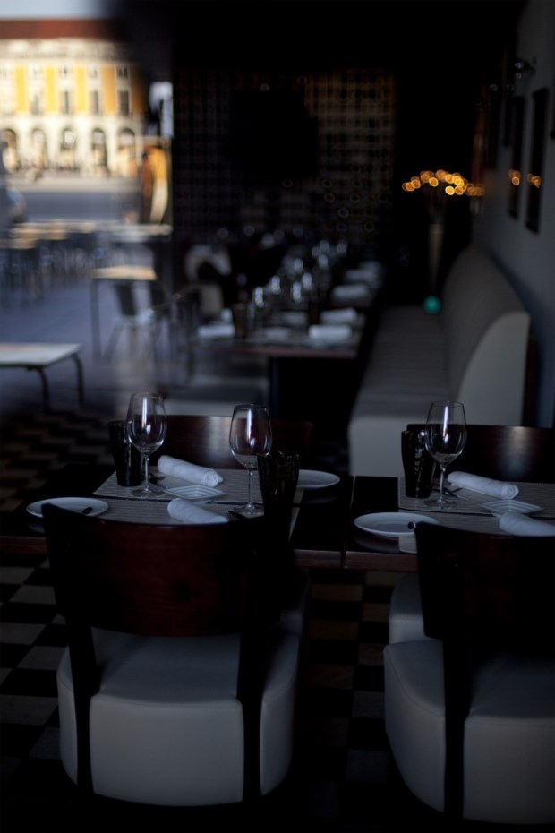 A esplanada é grande e convidativa à fruição de dois bens preciosos. Ter o tempo que nunca se perde ao ganhar uma vista grandiosa como é a do Terreiro do Paço e estar bom tempo para que esse prazer deslize até ao rio onde as águas diluem o sol sublime de Lisboa. Em se conseguindo o primeiro, o clima ameno que é cartão-de-visita da cidade encarrega-se do segundo. A sala interior não é menos convidativa. Há uma área inicial onde a cozinha serve de pano de fundo com uma aparência prática, pensada para os almoços e petiscos ao longo do dia. Ao lado fica a sala principal com chão em quadrícula a preto e branco, cadeiras confortáveis conjugadas com sofás de parede, bom aparelhamento das mesas e um pé-direito vistoso, com o tecto a ser rematado por abóbadas em tijolo, tão característico destes edifícios.