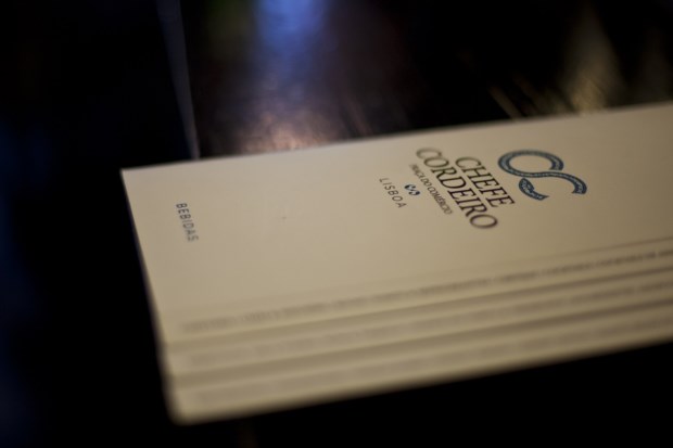 Num jantar de semana foi pena ver a sala praticamente vazia, apenas com dois casais de turistas estrangeiros, e uma recatada mesa redonda onde um ex-craque de futebol e respectiva família convivia com o próprio chef Cordeiro. A lista chegou, ou melhor, um conjunto de três folhas agrafadas de forma pouco prática (no topo), pois as páginas enfolavam quando eram viradas e algumas tinham manchas no papel. Como dizia o outro, “não havia necessidade...”, ainda para mais no serviço de jantares. O facto é que um deslize destes deveria ser perfeitamente evitável, sobretudo quando se tem o nome pendurado na fachada da casa.
