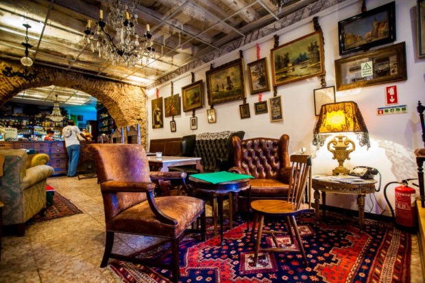 De um lado, uma parede coberta com vitrinas cheias de velharias, do outro, quadros antigos com molduras douradas. Bibelôs, porcelanas, malas e bijuterias enchem as prateleiras. Os candelabros, com vários braços, chamam a atenção para o tecto. Os barrotes antigos foram preservados mas tapados com acrílico para não largar caliça nem poeira. O Arco da Velha abriu em Maio, depois das obras de requalificação do Cais do Sodré, e quer fazer uma ponte entre o vintage e a modernidade.