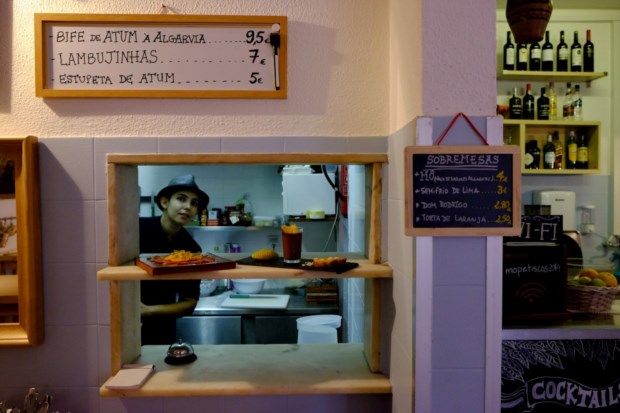 “Queria uma coisa mais clean, só com uns toquezinhos regionais, [até porque] o espaço é muito importante, mas eu queria dar mesmo destaque era à comida”, explica Raquel. E aqui sobressaem os petiscos algarvios, apesar de existirem também outros pratos mais próximos do paladar lisboeta, como punhetas de bacalhau ou frangalho. “Acho que temos de nos adaptar à envolvência, então diria que 70% é algarvio”, defende.