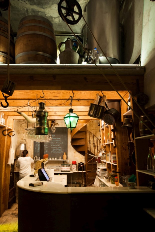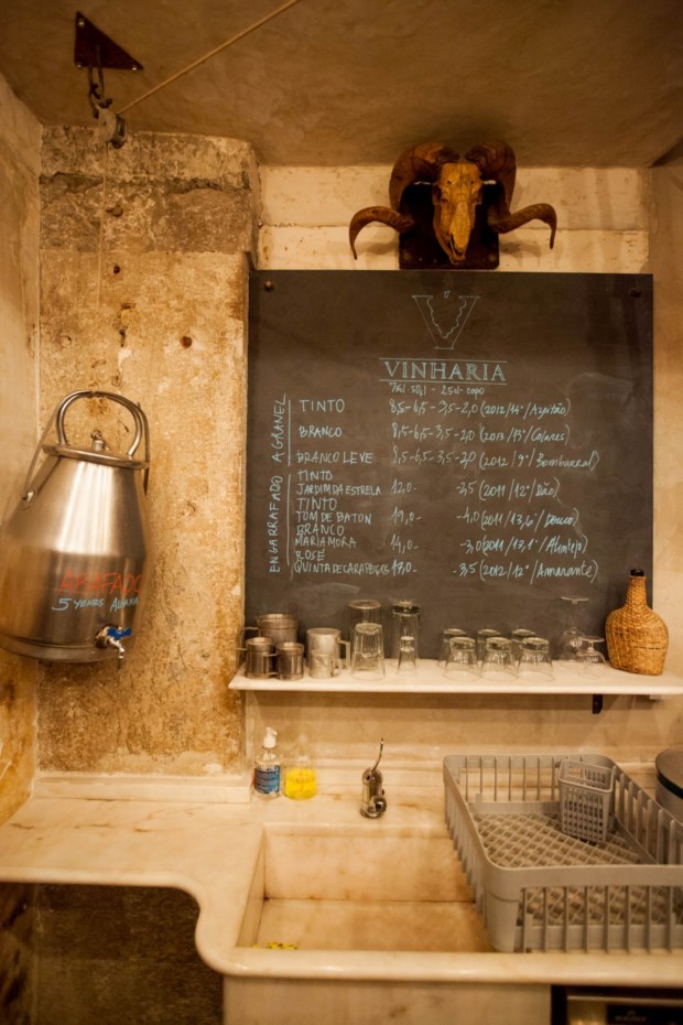 Uma destas novidades é exactamente o Vinharia, que abriu portas na Rua de São Paulo há pouco mais de dois meses. Inspirado nos antigos armazéns de vinhos, neste bar tudo gira à volta deste sumo dos deuses, escolhido pela casa e comprado directamente aos produtores. O espaço é pequeno — não há lugares sentados aqui — mas na rua há uma esplanada: duas mesas à porta e ainda um coreto na rua da frente com uma dezena de lugares. Surgiu como um complemento à Casa de Pasto do chef consultor Diogo Noronha, mas neste momento é já um bar que funciona por si.