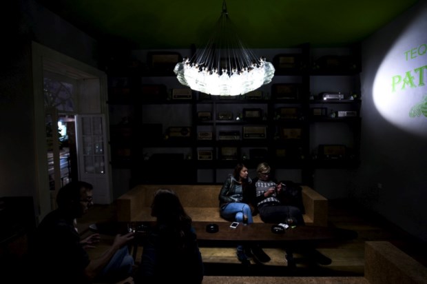 Mas esta é apenas uma das salas do AM, cada qual com uma personalidade bem vincada. A que mais sobressai é a “sala branca”, ou Grey Goose, já que é patrocinada por esta marca de vodka (“a melhor do mundo”, dirá Pedro Salazar — e não será a única vez que ouvimos esta reivindicação aqui): é um espaço alienígena, totalmente branco, dividido por um enorme arco.