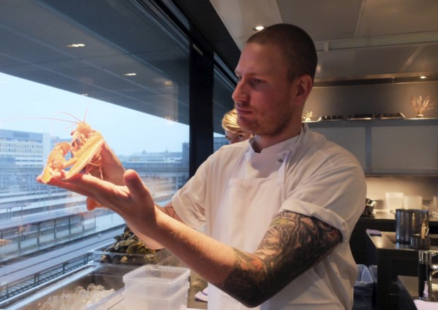 Quem se senta numa das nove mesas da sala, mais uma com vista aberta para a cozinha, tal andar de cima, completamente transparente para as luzes da cidade, não tem escolha. Os pratos e o vinho são da total responsabilidade do chef e do sommelier. À entrada, apenas uma pergunta: tem alergias? “O objectivo é oferecer uma experiência marcante, conseguir surpreender”, diz Esben Holmboe Bang, louro, alto, atlético, ainda em trajes informais. São onze da manhã e acaba de chegar da cidade onde foi avaliar a qualidade de umas folhas de pinheiro. Quando se fala de Maaemo, o nome de Esben nunca vem na mesma linha em que é colocado o restaurante. “O restaurante é o tema, não sou eu”, continua, numa conversa onde fala das duas faces da moeda que é ser chef de um restaurante reconhecido internacionalmente sem querer ser vedeta, ou uma pop-star, termo que usa para definir um estatuto recente associado a quem tem o protagonismo numa cozinha, mas que trouxe, reconhece, uma nova dinâmica à gastronomia. É disso de que se fala, quando se fala deste tipo de restaurantes dirigidos a um público que vê a comida como experiência mais do que alimento? “Eu preciso chamar-lhe cozinha. Eu sou um cozinheiro e é na cozinha que gosto mais de estar, apesar de saber que de vez em quando tenho de aparecer, ir a festivais, participar em eventos. Mas tento encontrar o equilíbrio, sempre a pensar no restaurante.”