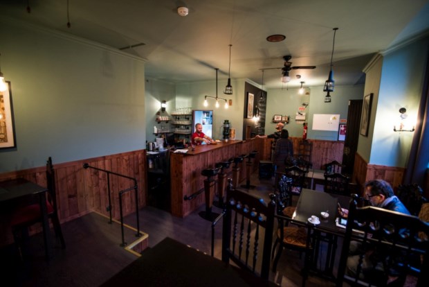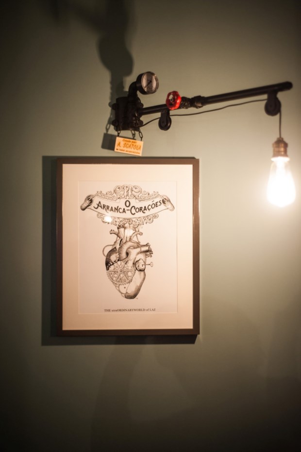 Neste pequeno espaço de Santa Apolónia, as máquinas de fumo cinzento foram substituídas por pequenos e discretos pormenores ligados à temática, entre mobiliário da época, ilustrações e vários objectos criados com canos, roldanas, torneiras de passagem e manómetros. Para breve está também a vinda de um desenho especial: o instrumento que arranca corações em duas obras de Boris Vian, dando nome à casa. “Sempre o idealizámos muito steampunk, cheio de manómetros e manivelas.”