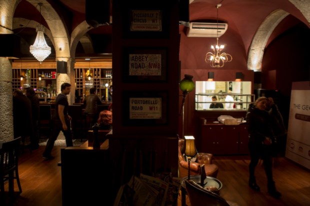 Este lado mais familiar é algo que querem igualmente imprimir ao bar, tanto no “contacto mais pessoal com o cliente” como no “ambiente confortável e acolhedor”. Uma public house é isso mesmo, defende: “Um sítio público mas onde as pessoas se sintam em casa”. Um lar inglês, portanto — dividido entre a sala de jantar, mais virada para a restauração, e sala de estar, mais lounge —, onde não faltam sofás e cadeirões de cabedal castanho, relógios de parede, quadros com bucólicas paisagens britânicas ou a famosa cabine telefónica vermelha, candeeiros de pé alto, jornais ingleses, almofadas de bigode enrolado e tapete de pele tigrada. Brevemente haverá ainda um mui britânico chá das cinco e festas temáticas, calendarizadas segundo as datas celebradas na Grã-Bretanha.