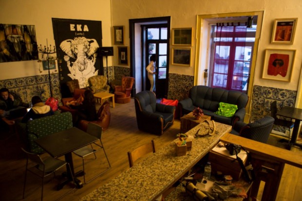 Já no piso superior, fica o EKA. As salas são um caos ordenado artístico, entre móveis recuperados, paredes desenhadas, quadros e instalações, peças de arte criadas ou em criação, símbolos e estatuetas que unem culturas, um tecto decorado a chapéus-de-chuva, um pátio cheio de gente a criar.