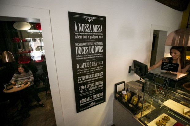 A montra principal funciona também como cafetaria, onde pode acompanhar, por exemplo, um ovo mole de Aveiro com um café.