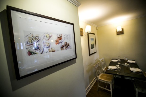Há uma sopa de tomatada com enchidos (5,50€) e um caldo de galinha com cogumelos (5,20€), a que se segue a lista “para picar” que cruza tradição e modernidade com coisas tão apelativas como xerém de amêijoas (7€), bacalhau fumado com vinagreta, tomate seco e amêndoa (8,20€), fígados de pato com compota de cebola (6,50€), lulinhas fritas com molho tártaro (6,50€), pica-pau do lombelo de vitela (8,60€) ou ovos “rotos” com trompetas (6,80€).