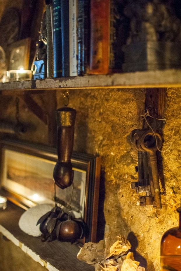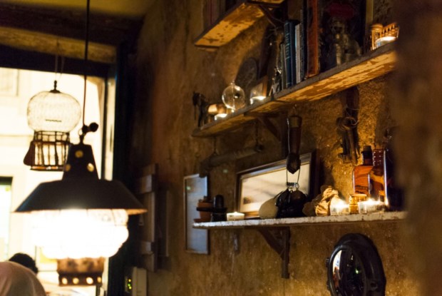 Agora, pelo espaço, os olhos vão passeando por peças que, todas, parecem ter uma história para contar. Do piano francês à bicicleta inglesa, do balcão de bar construído com madeira de um velho cargueiro alemão aos candeeiros vindos de barcos ou ao relógio de submarino russo. Há até uma parede que serve de “gabinete de curiosidades”, esses pré-museus que noutros séculos encantavam ocidentais com peças exóticas trazidas de mundos desconhecidos.