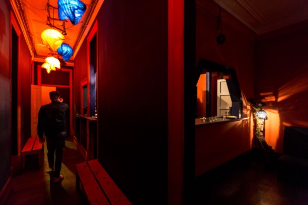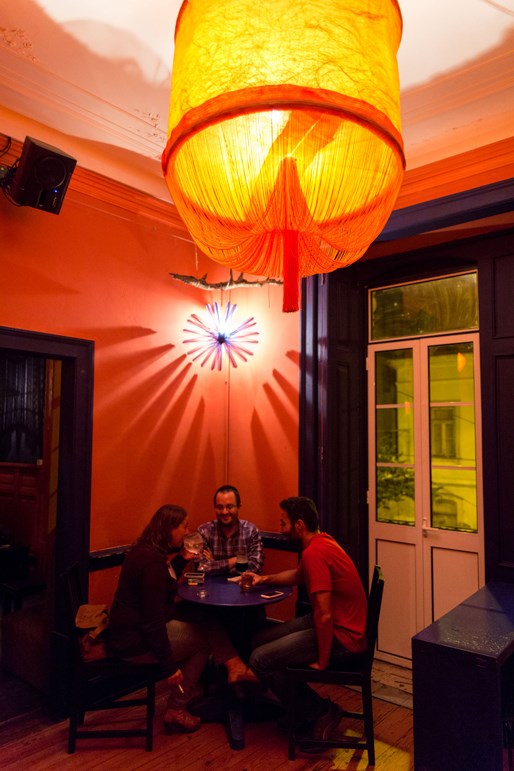 Hoje não há DJ. Jeff Buckley repete-se e mais tarde a música veste-se de rock- mais-rock, a pender para o alternativo. A electrónica também entra aqui mas nunca com carta de alforria – o rock, sempre o rock, como base (vejam-se as noites “Almost rock”, de Afonso Macedo). Hoje tão pouco há dança, por enquanto, pelo menos, e os clientes espalham-se pelas salas em grupos pequenos – quase tão pequenos quantos as salas, com sofás encostados às paredes e mesas diante. É despido de excessos decorativos este bar cuja luz declina em várias tonalidades consoante a cobertura dos candeeiros – são obras da casa, digamos, saídos da imaginação e das mãos dos proprietários: têm várias formas, são feitos de materiais diversos e estão sempre pendurados em troncos encaixados nas paredes.