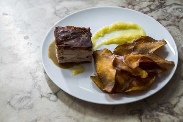 O menu – impresso numa folha que os clientes podem levar com eles no final – está dividido em couvert, onde se inclui o tal queijo fresco com azeite (3 euros), enchidos de porco preto e não só (4,5 euros) ou queijo manchego (6 euros). Depois passamos à secção “Para Começar”, que inclui, entre outras coisas, ovos e espargos verdes, ovos e farinheira (ambos a 6,5), ratatouille e ovo (7,50), escabeche de pato (9 euros) ou bacalhau, pão e poejos (9,5), ou seja, migas de bacalhau.