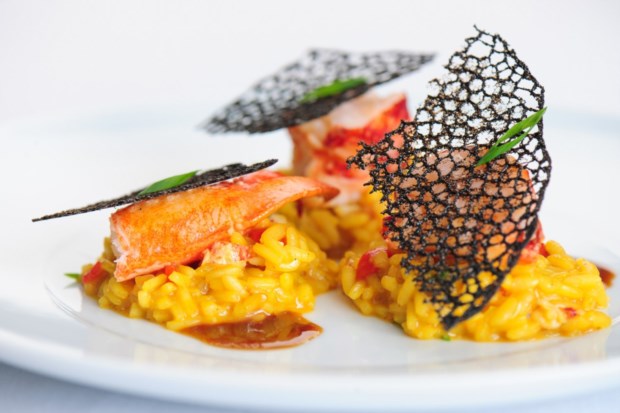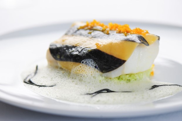 A refeição começou com um amuse bouche que era uma divertida “club sanduíche” feita com lavagante e acompanhada por uma deliciosa emulsão da bisque (caldo). A seguir, o chef apresentou lulas servidas como uma carbonara, com gema de ovo confitada, e aipo e maçã Granny Smith a cortarem a generosidade do prato com uns toques de acidez.