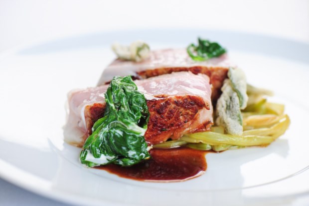 Como prato de peixe, André trouxe à mesa um linguado recheado de espinafres e cogumelos, umas excelentes batatas cozinhadas num caldo de galinha com manteiga e com um leve sabor fumado e salgado dado por ovas de arenque, tudo acompanhado por um molho feito com as espinhas do linguado, natas e espumante.