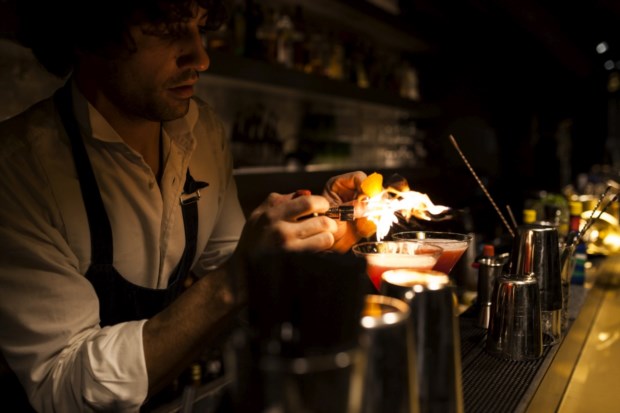 “I’m a pervert but in a romantic way” (sou, digamos, um pervertido mas de uma forma romântica), lê-se numa prateleira da biblioteca ao nosso lado enquanto o ambiente de fim de tarde é embalado pela voz de Sade Adu. À nossa frente, o cocktail da casa, um bom (e, por sinal, docinho) exemplo do que se pode esperar: este DoubleNine em taça de pé alto é uma “infusão de limão a frio com xarope de chá de baunilha, natas, gin, redução de manga com espuma de avelã”. Cocktail gourmet, portanto — e como este há mais 17 na carta.