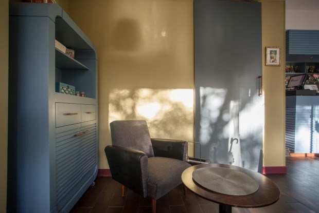 Este restaurante não é novo, tem nove anos, mas reabriu recentemente com uma nova cara. Os proprietários olharam à sua volta e viram várias coisas. Por um lado, a concorrência a aumentar, com novos espaços, com ofertas mais jovens, como o vizinho Hamburgueria do Bairro, ou do outro lado da rua o Fish&Chips. Por outro, observaram o sítio onde se encontram, o famoso (porque o primeiro) centro comercial ao ar livre do país, projectado pelo arquitecto Raúl Chorão (1914-2002) na década de 1950, com azulejos de Querubim Lapa (1925).