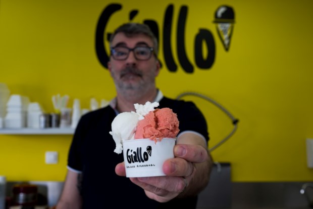 Inaugurada em Agosto passado numa esquina junto ao Jardim da Parada, a Giallo é uma gelataria de fabrico artesanal e um projecto de família. A ideia partiu de António e Ludovina, juntaram-se a filha, Olga Ramos, e o marido, Ricardo Rezende, ambos realizadores; veio o “primo” gelateiro Francisco Freitas, madeirense com ascendência italiana e “20 e tal anos” de experiência.