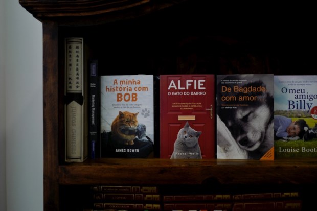 Mas, com ou sem tubarões, não desistiu e aqui há (mesmo) gato. Melhor, gatos: agora são cinco, o Bruno - " que dormia ali na arca, só se via a cauda" - e a Bruna - muito social e "que veio toda contente para aqui"- e os "adoptados", que chegam através de uma parceria com a associação SOS Rafeiros: a Nessie, a Tâmara, que é uma gatinha preta anã, e o amarelo Baguete – um gatinho “praticamente cego”. Espalham-se pelos sofás, pelas suas torres e brinquedos, enquanto esperam outras companhias felinas.